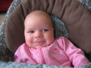She's smiling like a pro now and such a cutie! She's so alert and loves to look out the windows or even bat around her little toys that hang over her on the crib or her floor mat. She also sleeps like a pro too!!